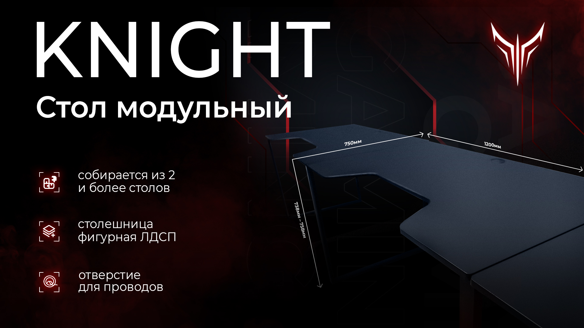 Однако их ассортимент креслами не ограничивается. В этот раз в фокусе нашего внимания — 2 новинки Knight, которые позволят закрыть вопрос с клубной мебелью в «одном окне». Это модульные столы и полки для игровых ПК.