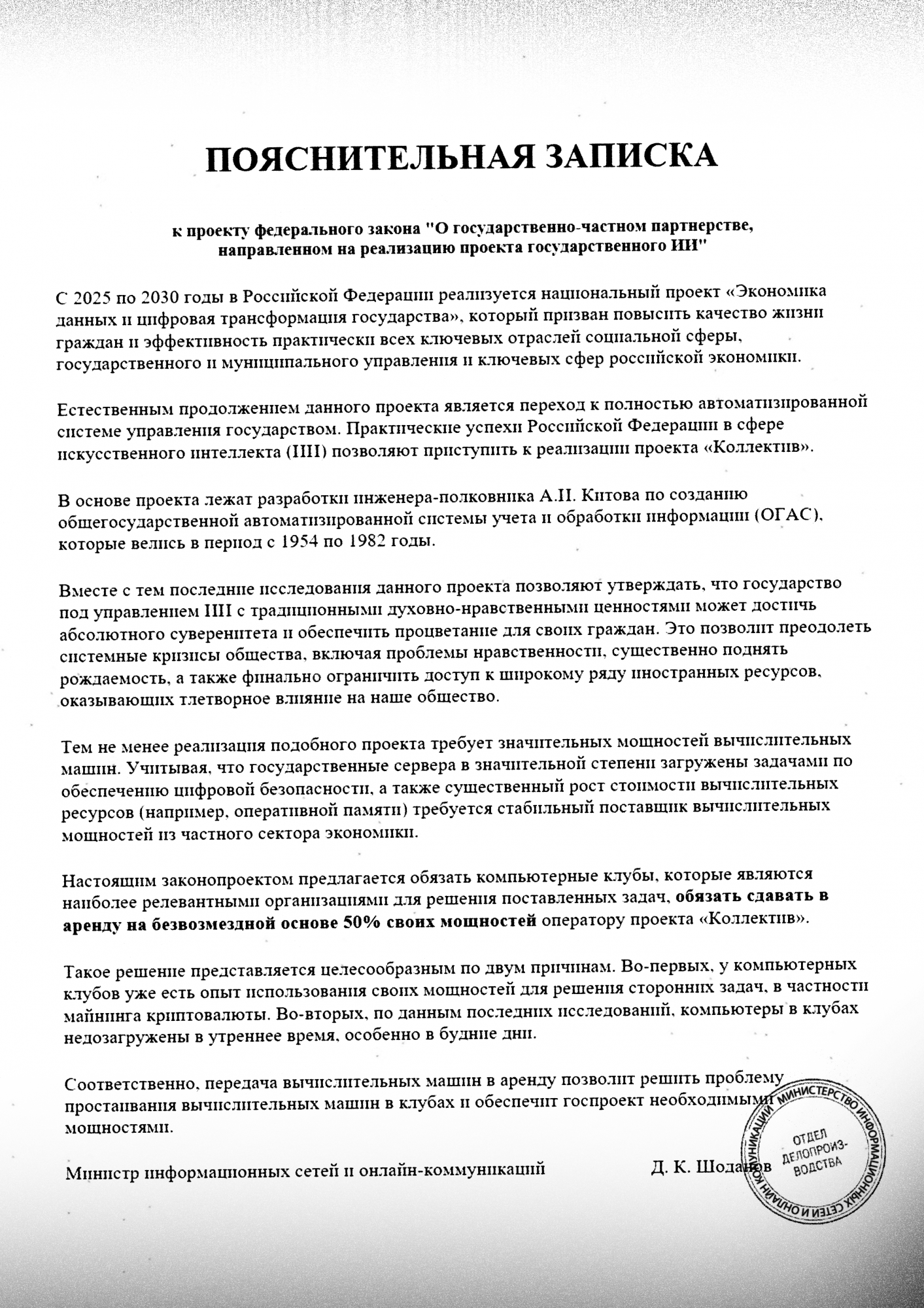 Коллегам из АРКИ (Ассоциация развития киберспортивной инфраструктуры) буквально на днях попал в руки проект нового закона, который сильно повлияет на работу клубов. Мы ознакомились с его текстом и, мягко говоря, охренели. Если переводить с чиновничьего на русский, клубы должны будут сдавать половину своих ПК в аренду правительству для разработки ИИ. Бесплатно.